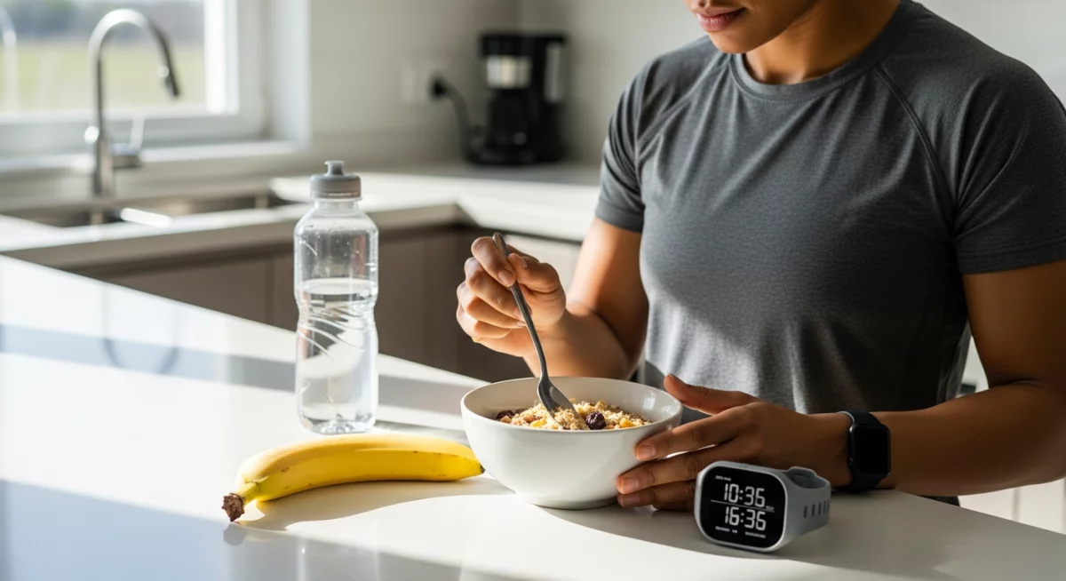 Pour une collation 30 à 60 minutes avant l'effort, optez pour des glucides à index glycémique modéré à élevé, plus rapidement assimilables : une banane, une compote, des dattes, ou une barre énergétique. Cette stratégie est particulièrement pertinente avant des séances intenses comme le circuit training où l'intensité requiert une disponibilité énergétique immédiate. La quantité recommandée varie entre 0,5 et 1 g de glucides par kg de poids corporel selon l'intensité prévue.